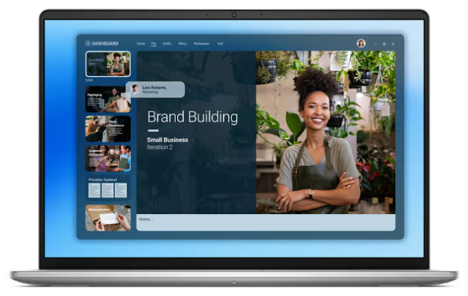 Laptop Dell 16 DC16251 Thưởng thức hình ảnh rõ nét và không gian hiển thị rộng rãi trên màn hình 16 inch cùng tỷ lệ 16:10, mang đến trải nghiệm xem rộng và đắm chìm hơn.