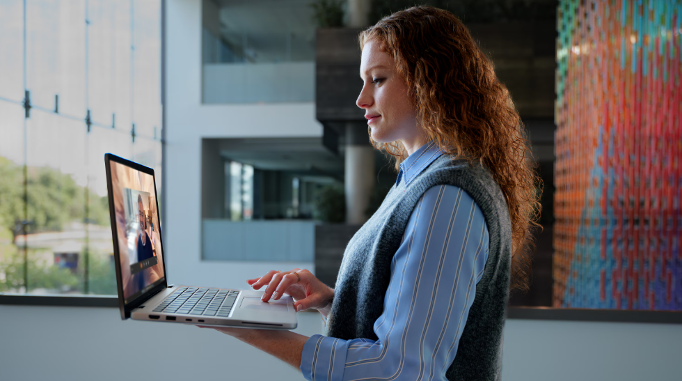 Laptop Dell Pro 14 Plus PB14250 Duy trì kết nối và làm được nhiều việc hơn với Microsoft Teams và Microsoft Studio Effects. Giờ đây, bạn có thể loại bỏ những hình ảnh và âm thanh gây phân tâm và nâng cao trải nghiệm cuộc gọi video.